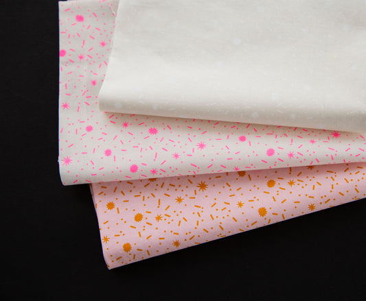 We will have yardage of all 26 prints, as well as shop cut collection bundles. We carry Egg & Friends precuts including charm packs, mini charms, jelly rolls, layer cakes and factory cut fat quarter bundles.